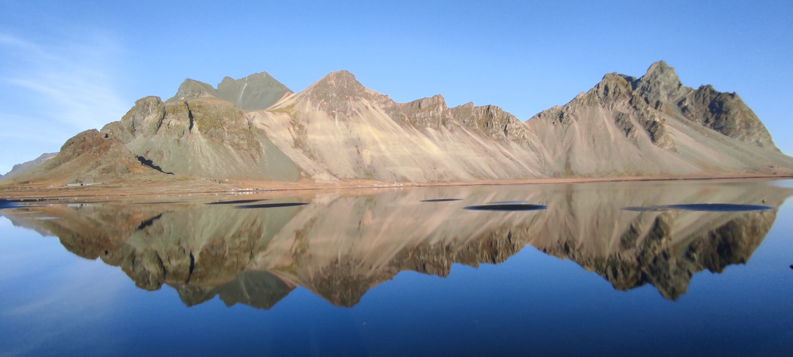 Stokksnes – Vestrahorn is a picturesque peninsula renowned for its dramatic landscapes and striking vistas. Towering mountains, including the iconic Vestrahorn, dominate the skyline, creating a breathtaking backdrop for photographers and nature enthusiasts. The black sand beach, flanked by rugged dunes and grassy plains, offers a stark yet mesmerizing contrast to the surrounding scenery. Whether admiring the Northern Lights dancing overhead or soaking in the midnight sun’s golden glow, captivates with its raw beauty and untamed wilderness. Stokksnes offers unforgettable mountain reflections perfect for photography. With its iconic Vestrahorn peak and tranquil surroundings, it’s a photographer’s dream come true.